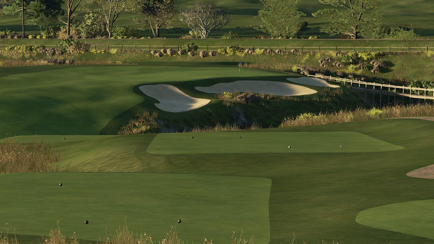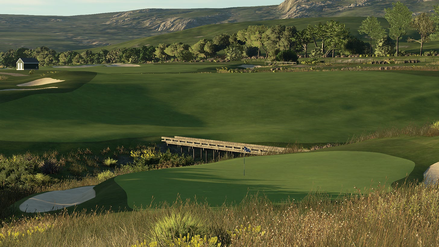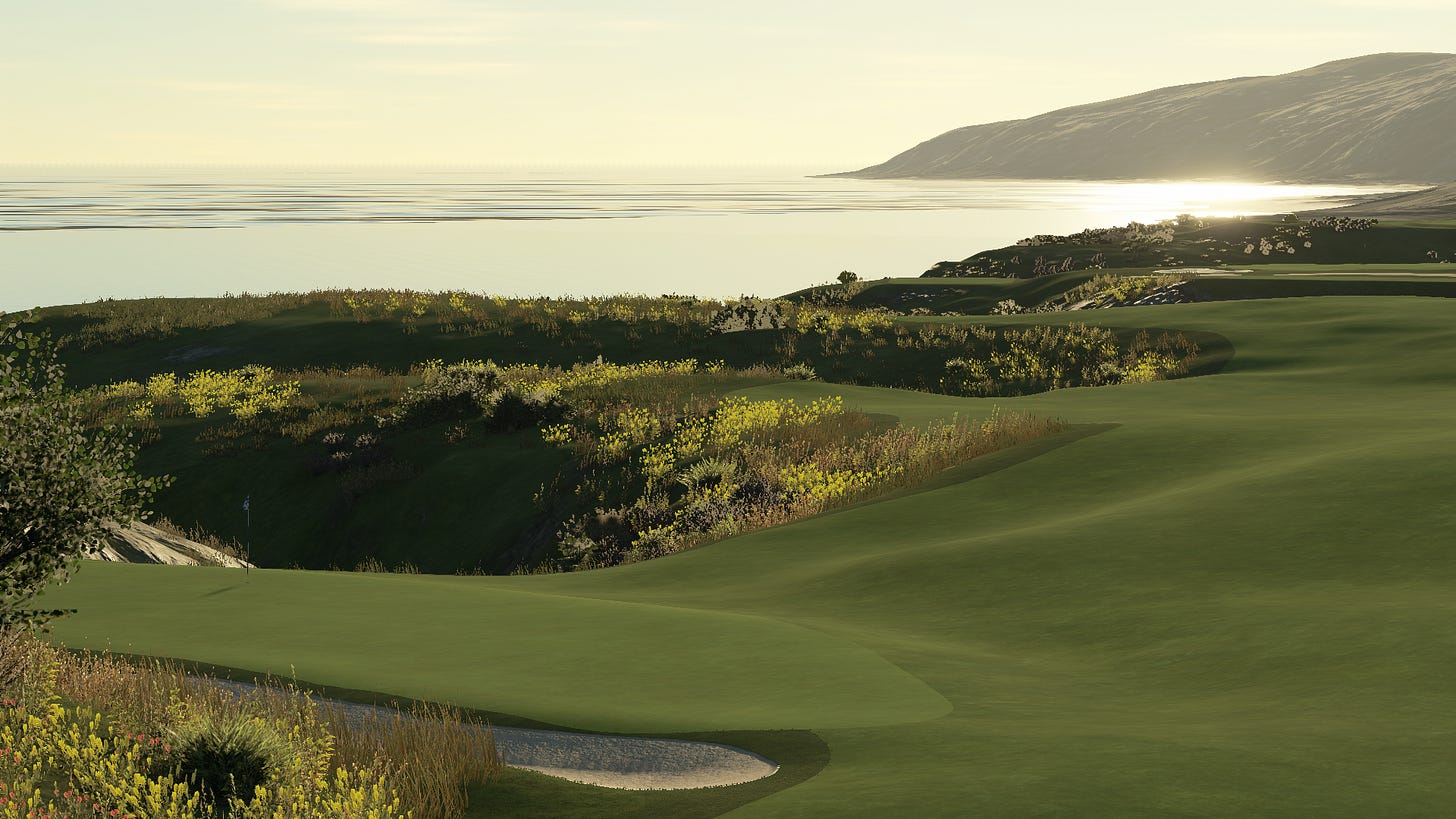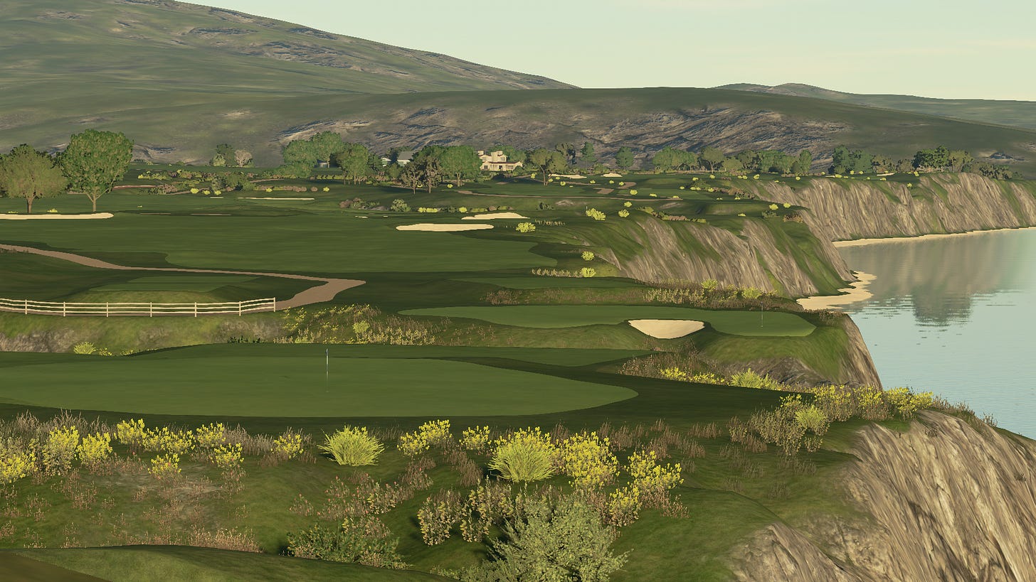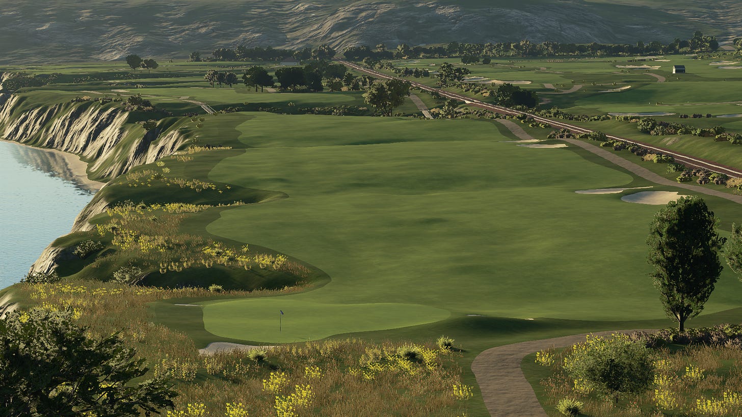Tipping out at just over 6600 yards, it would never play host to the PGA Tour or a major. As far as video game courses go, it’s not even a remotely difficult course. And yet between the carries over native areas, the views, and the endless options for playing each hole, it would pose a real-life challenge for amateurs, while still being endlessly enjoyable. Not to mention, with so many holes allowing you to choose how aggressive to be off of the tee, it would be an ideal match play course.